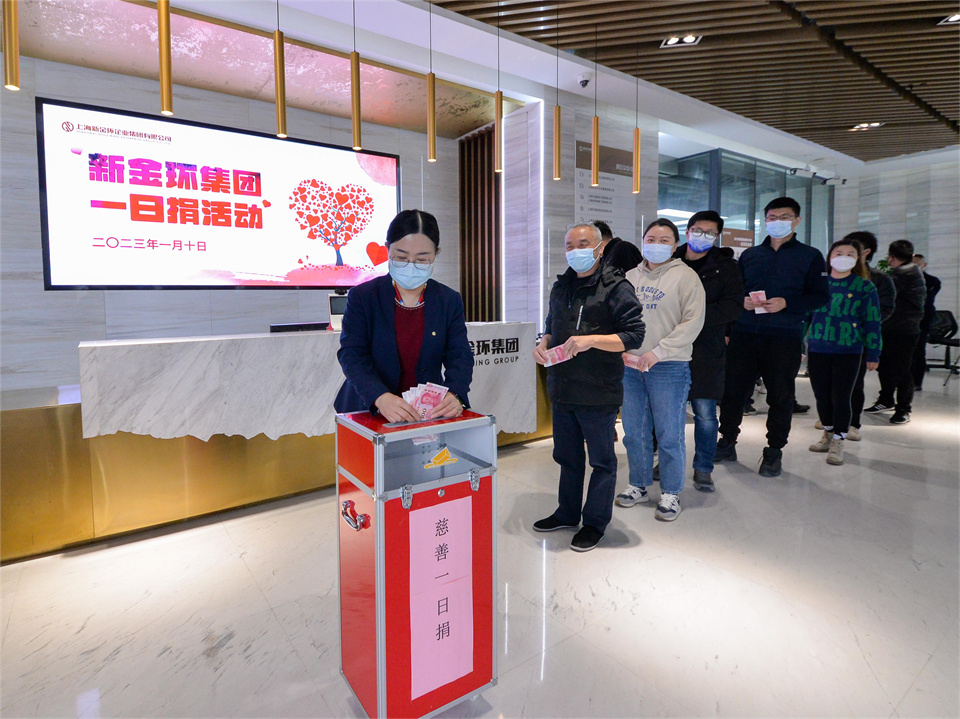 1月10日上午,新金環集團積極響應桃浦鎮“慈善募捐”號召,組織廣大干部職工開展以《點滴施樂、陽光行善》為主題的“慈善一日捐”活動。集團黨委書記、董事長張志慧帶領黨政班子率先垂范,帶頭參與,干部職工積極響應,紛紛慷慨解囊,獻出愛心和善款。