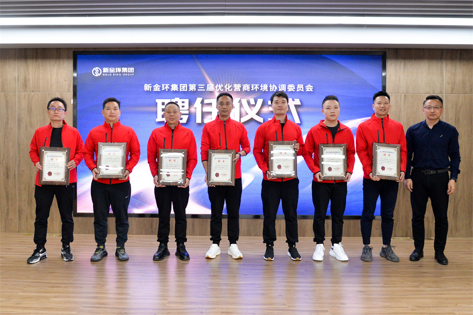 本次會(huì)議上,還向新金環(huán)集團(tuán)第三屆優(yōu)化營商環(huán)境協(xié)調(diào)委員會(huì)全員頒發(fā)了聘書。