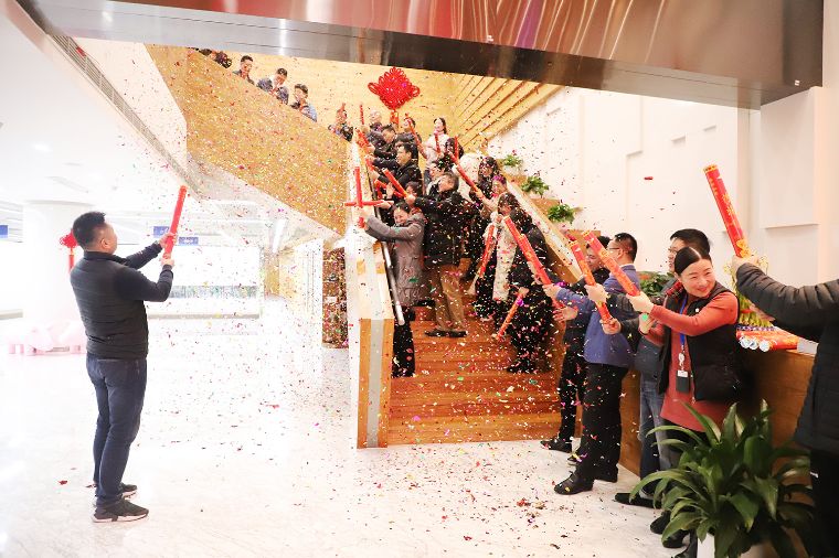 2019年2月11日上班伊始,上海金環工業有限公司全體同仁,在黨委副書記、總經理朱慶良的新年祝福中于金環·匯智天地11樓拉響了手中的禮炮,伴隨著禮炮聲聲響起,預示著新的一年里,金環公司也必定圓滿完成全年各項工作任務,取得轉型發展新的突破。朱慶良在新年祝福中表示,新的一年,是新起點,是新時代,金環將不忘初心,在鎮黨委、政府的正確領導下邁上新的臺階。